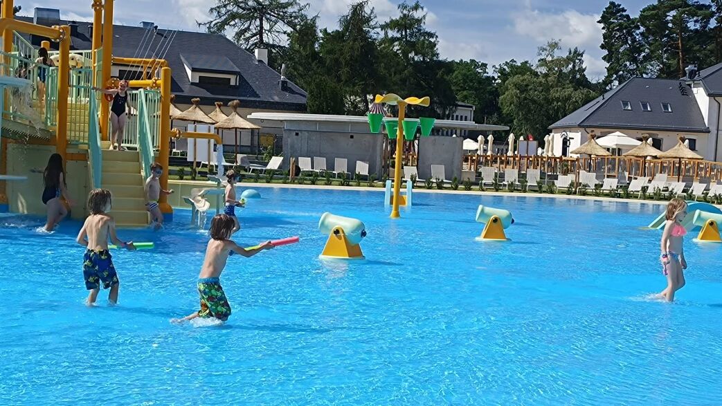 nieograniczony wstęp do Parku Wodnego - strefy wodnej zabawy w skład której wchodzą: zjeżdżalnie, poziomowana strefa basenowa, strefa rekreacyjna z interaktywnymi zabawkami i strefa wypoczynkowa z leżakami